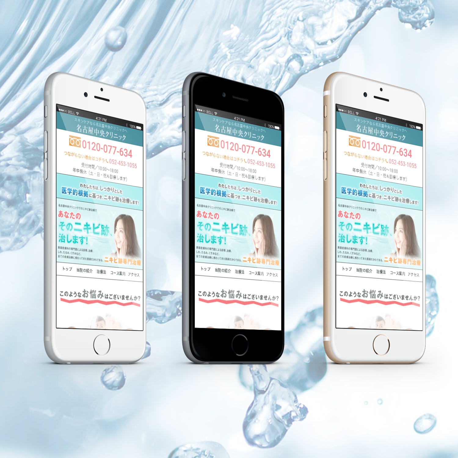 - ニキビ治療に関するスキンケアを目的としたランディングページを制作。エンドユーザーに読ませる部分と魅せる部分を意識して制作いたしました。淡いブルーを中心に爽やかで清潔感のある仕上がり。